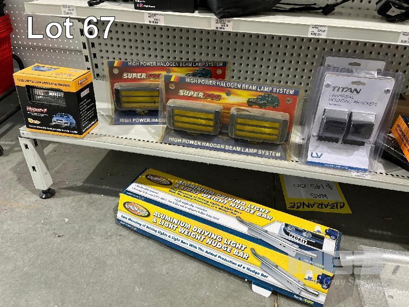 QTY 4x4 LIGHTING ACCESSORIES, HALOGEN SPOT LIGHTS, MOUNTING BRACKETS, WIRING HARNESSES