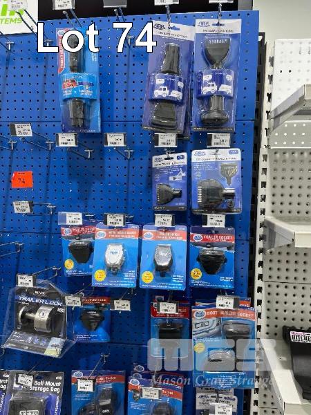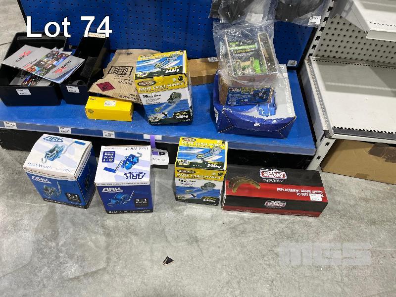 LARGE QTY TRAILER SPARES & PARTS, HAND CABLE WINCHES, TRAILER PLUG ADAPTERS, TRAILER LOCKS, SOCKETS ETC. (CONTENTS OF 1 SHADOW BOARD)