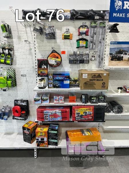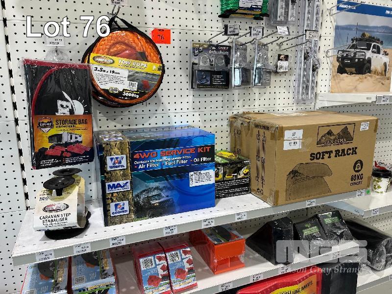 LARGE QTY 4x4 & CARAVAN ACCESSORIES, ROOF RACKS, ANCHOR POINTS, TOW ROPE, 4x4 SERVICE KIT, LEVELLING RAMPS, CARAVAN STABILISER STANDS ETC. (CONTENTS OF 1 SHADOW BOARD)