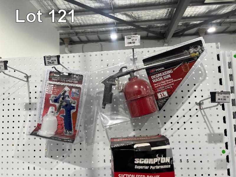 4 x 12V COMPRESSORS, SUCTION FEED DELUXE SPRAY GUN, AIR ACCESSORY SETS, SPRAY GUNS, DEGREASING WASHGUN, AIR HOSE ETC. (CONTENTS OF 1 SHADOW BOARD)