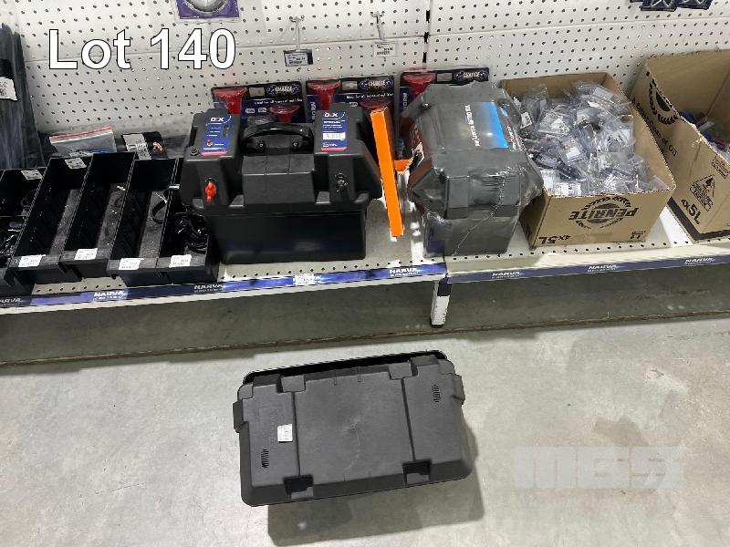 3 x BATTERY BOXES, AIR HORNS, FUSES, BATTERY CLAMPS, BRAIDED SLEEVING, CABLE CLAMPS ETC. (CONTENTS OF 2 SHADOW BOARDS)