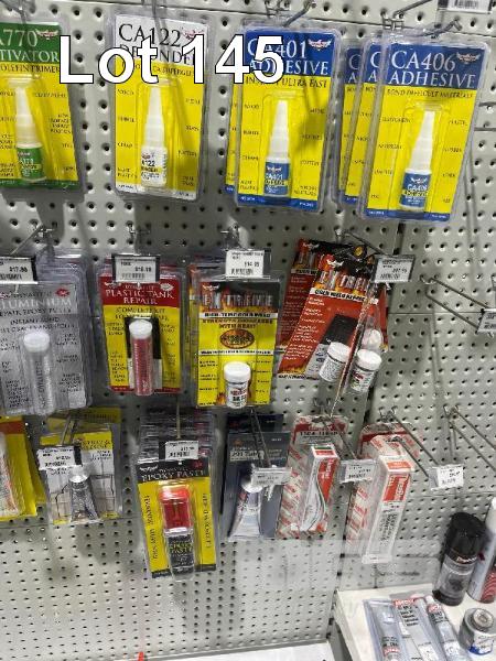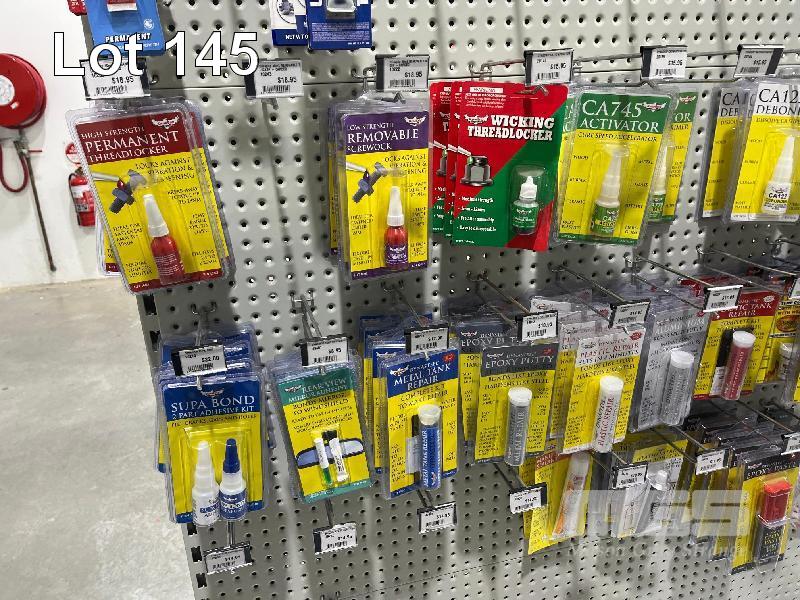 ASSORTED ADHESIVES, PLASTIC REPAIR SETS, COLD WELD, EPOXY, TREADLOCKER, SILICONES, RTV, ETC. (CONTENTS OF 2 SHADOW BOARDS)