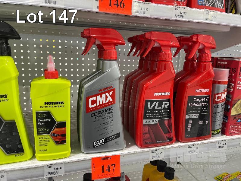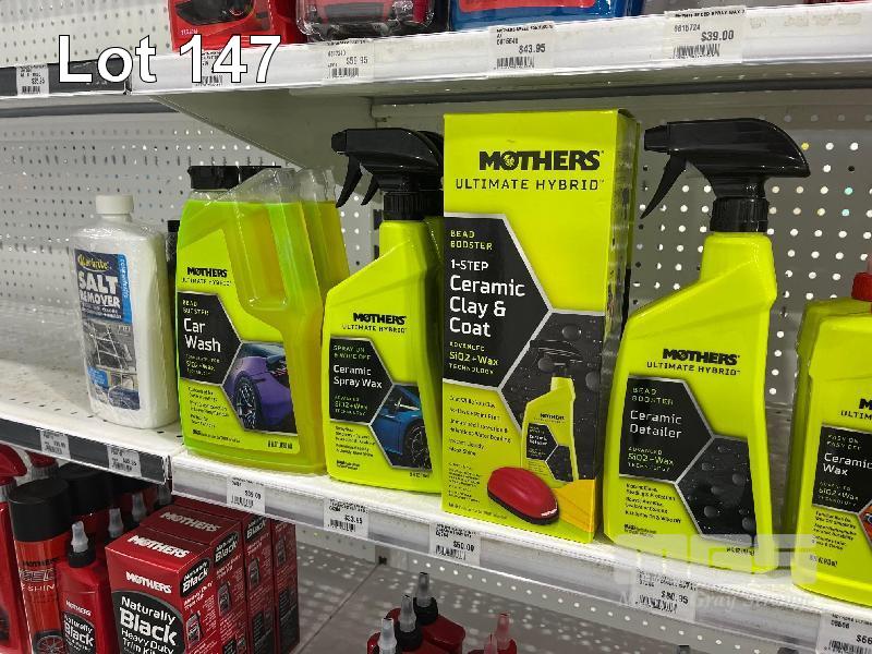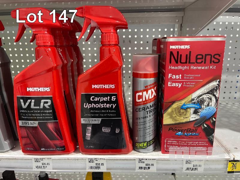 QTY MOTHERS CAR CLEANING PRODUCTS: CAR WASH, CERAMIC SPRAY WAX, CERAMIC DETAILER, INTERIOR CLEANER, HEADLIGHT RENEWAL KIT, ETC.