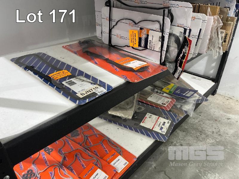 LARGE QTY ASSORTED GASKETS, HEAD GASKETS, VALVE COVER GASKETS, OIL PAN GASKETS ETC. (CONTENTS OF 5 SHELVES)