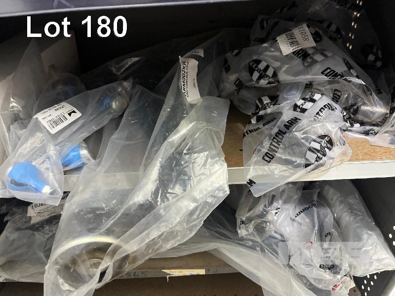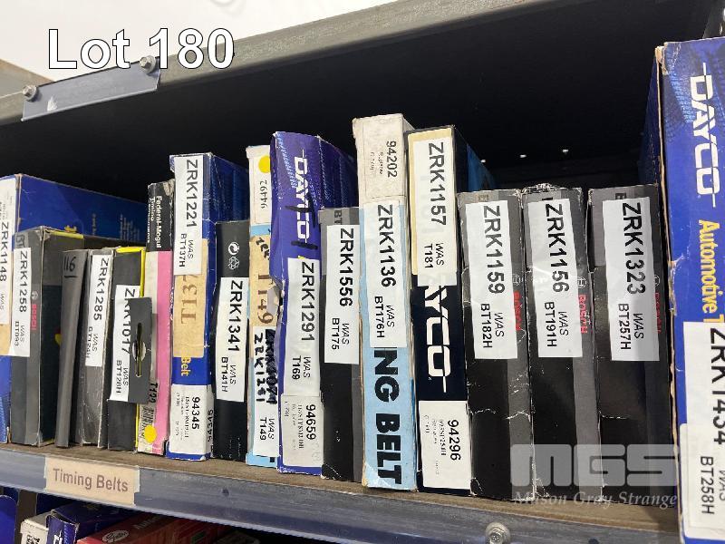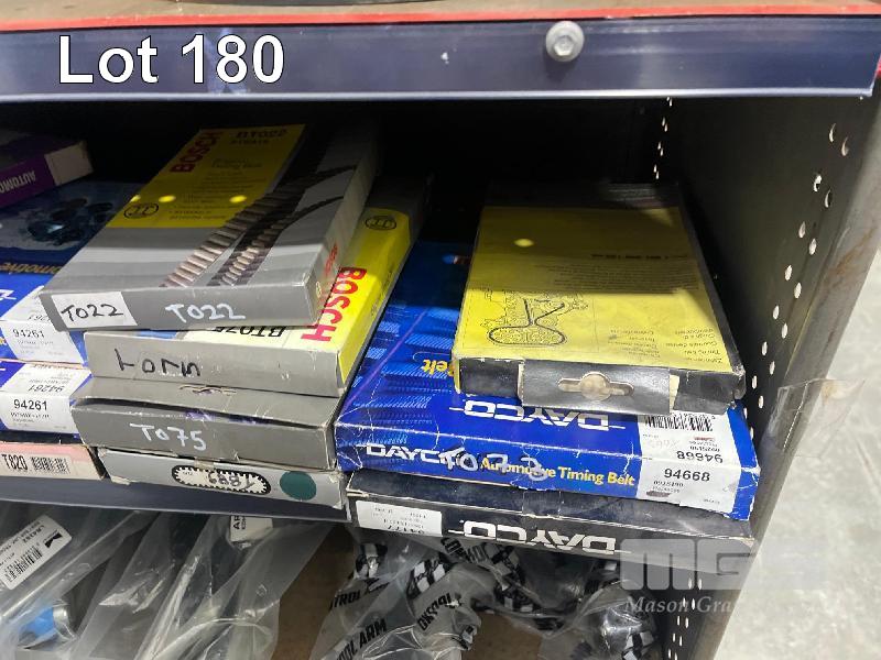 LARGE QTY TIMING BELTS, SUSPENSION COMPONENTS, SWAY BAR LINKS, CONTROL ARMS ETC. (CONTENTS OF 1 SHELF UNIT)