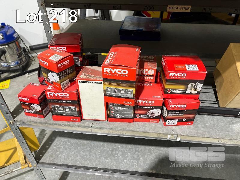 LARGE QTY ASSORTED RYCO FUEL FILTERS, AIR FILTERS & OIL FILTERS