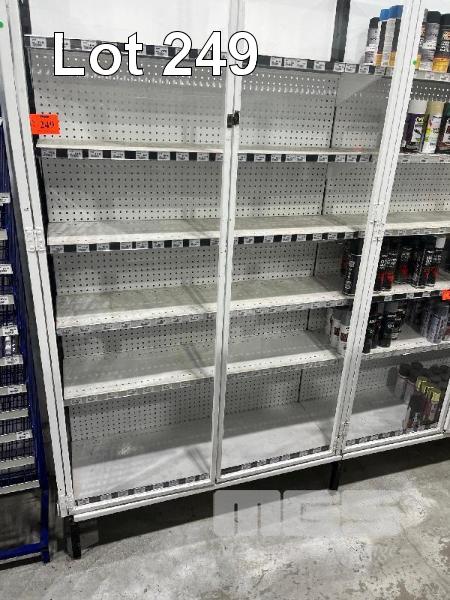 2 x BAYS LOCKABLE PAINT STORAGE RACKS, EACH BAY 1200 x 2200mm (H) WITH 2 x FREE STANDING PAINT STORAGE RACKS, 470 x 1800mm (H)