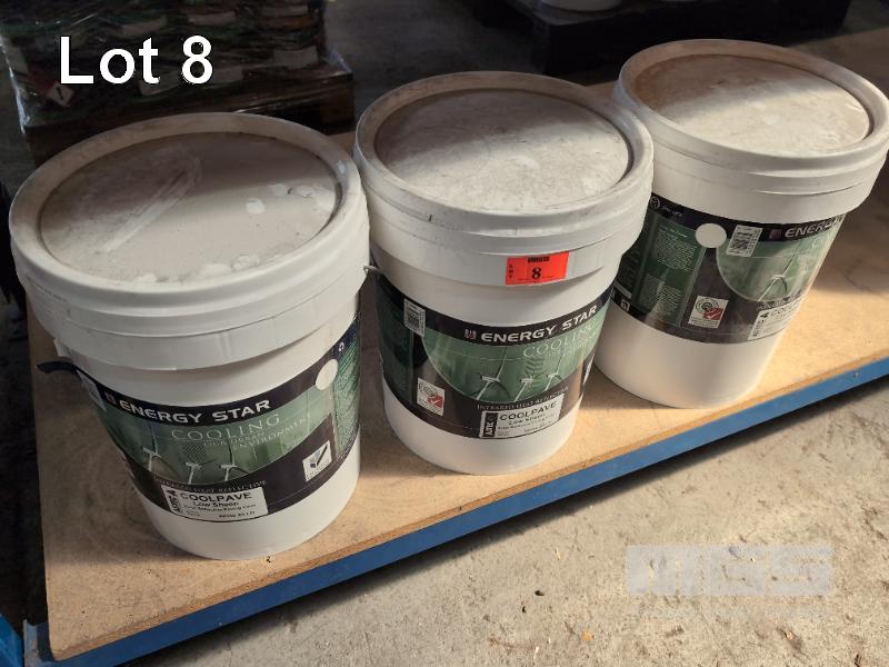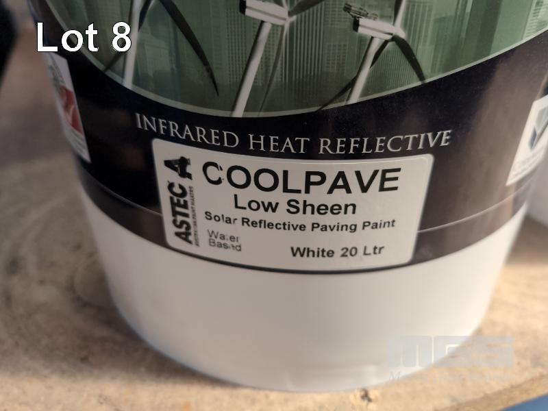 3 X 20 LITRE PAILS ASTEC PAINTS COOLPAVE LOW SHEEN SOLAR REFLECTIVE PAVING PAINT. COLOUR WHITE.