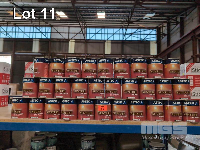 37 X 1 LITRE TINS ASTEC PAINTS SUNTUFF LOW SHEEN PREMIUM ACRYLIC PAINT. COLOUR ACCENT.