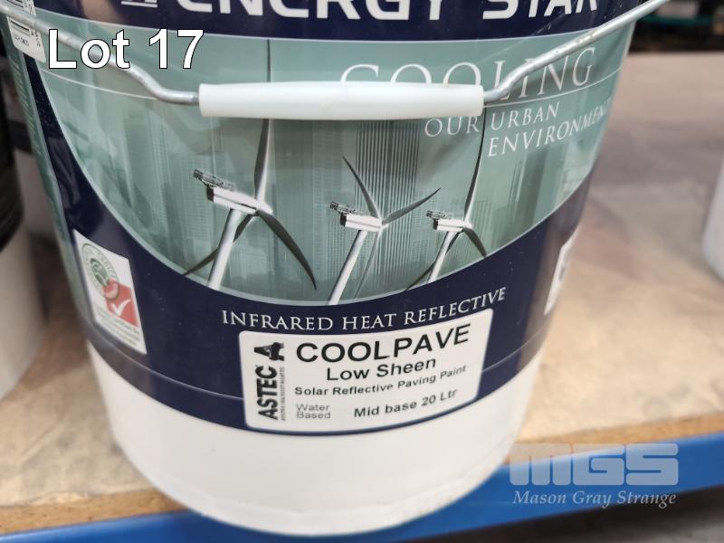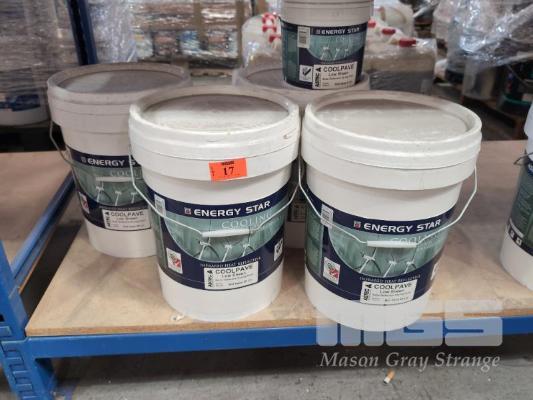 4 X 20 LITRE AND 1 X 4 LITRE PAILS OF ENERGY STAR COOLPAVE LOW SHEEN WATER BASED INFRARED HEAT REFLECTIVE PAVING PAINT. COLOUR MID BASE.