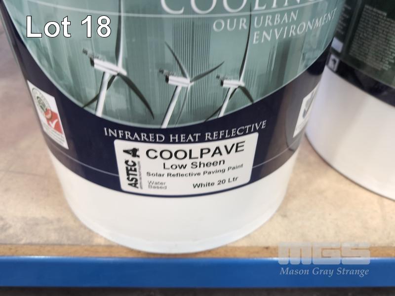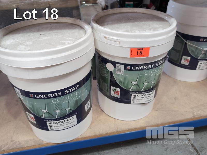 2 X 20 LITRE PAILS OF ENERGY STAR COOLPAVE LOW SHEEN WATER BASED INFRARED HEAT REFLECTIVE PAVING PAINT. COLOUR WHITE.