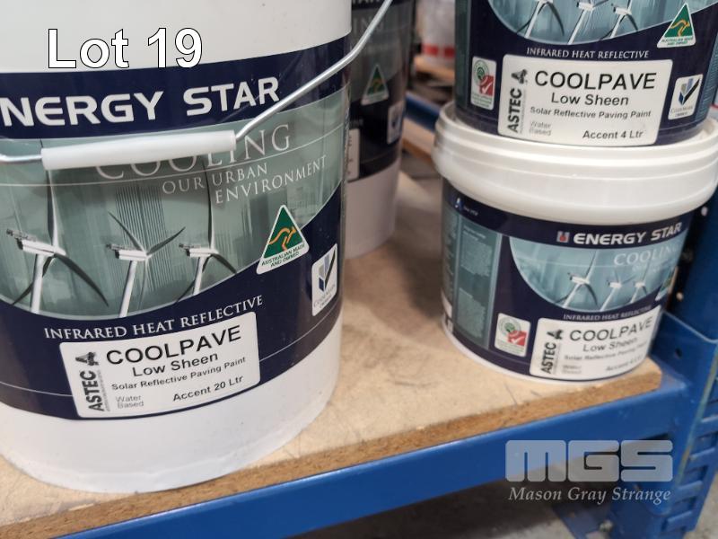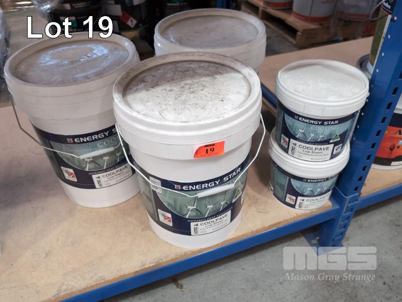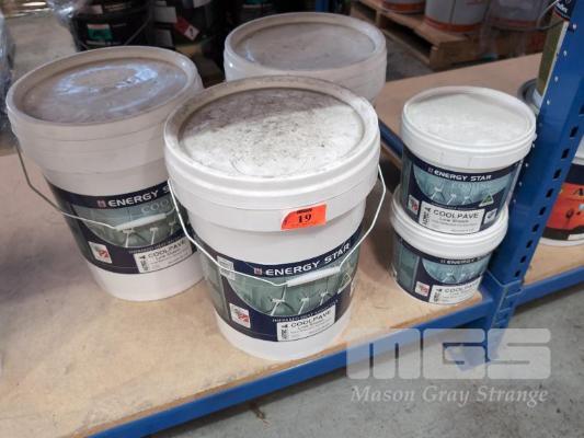 3 X 20 LITRE AND 2 X 4 LITRE PAILS OF ENERGY STAR COOLPAVE LOW SHEEN WATER BASED INFRARED HEAT REFLECTIVE PAVING PAINT. COLOUR ACCENT.