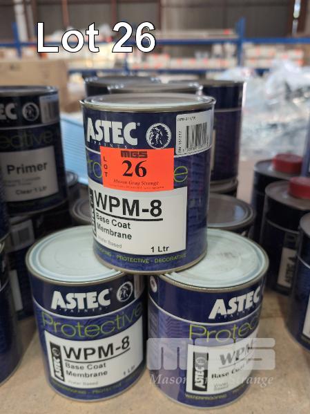12 X 1 LITRE TINS ASTEC PAINTS WPM-8 BASE COAT MEMBRANE.