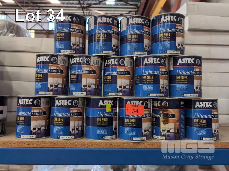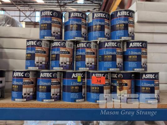 7 X 1 LITRE TINS OF ASTEC PAINTS ULTIMATE SERIES SUPER PREMIUM ACRYLIC LOW SHEEN INTERIOR PAINT. COLOUR ACCENT. 8 X 1 LITRE TINS OF ASTEC PAINTS ULTIMATE SERIES SUPER PREMIUM ACRYLIC LOW SHEEN INTERIOR PAINT. COLOUR MID BASE.