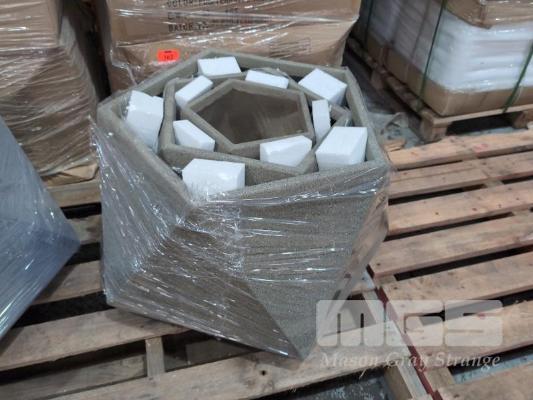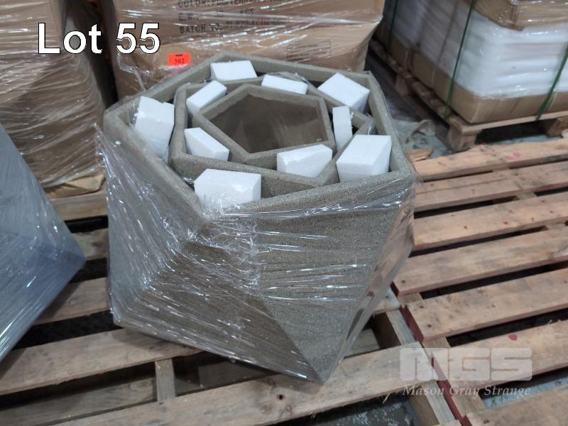 2 X SETS OF 3 CONTEMPORARY PLANTER POTS (NEW) STYLE GEO TERRAZZO SQUAT COLOUR TAUPE SIZES (W W H) 2 @ 340 X 340 X 260 MM. 2 @ 520 x 520 X 360H MM. 2 @ 730 x 730 X 480H MM RRP $415.95 PER SET