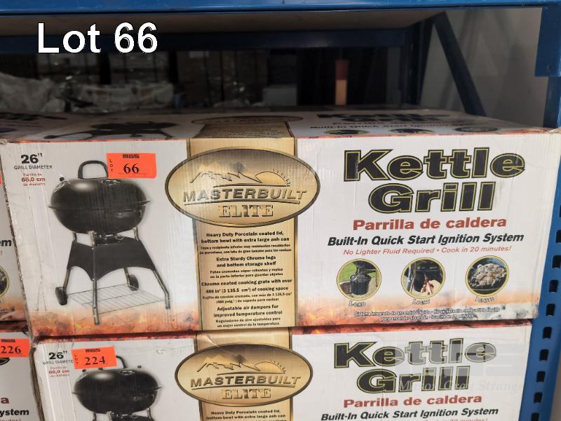 MASTERBUILT ELITE 26" KETTLE CHARCOAL GRILL * 66 CM DIAMETER GRILL ** BUILT-IN QUICK START IGNITION SYSTEM. EXTRA STURDY CHROME LEGS WITH STORAGE SHELF. MODEL 20041411 NEW IN BOX. ORP $399