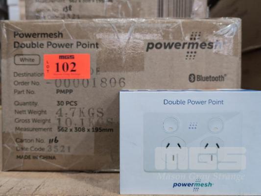 30 X ZIMI POWERMESH DOUBLE SMART BLUETOOTH POWER POINTS. SUPPORTS HEY GOOGLE & ALEXIA RRP: $140 EACH. ALL NEW. 1 X CARTON.