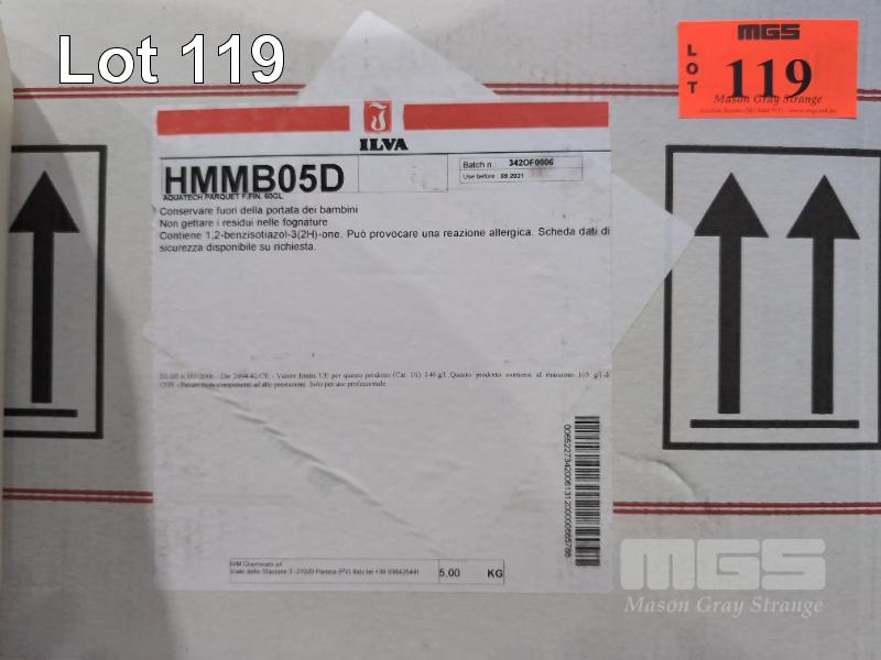 4 X 5.0 L CONTAINERS ILVA AQUATECH FLOORING (HMMB05D) CLEAR WATER BASED SELF-SEALING TOPCOAT, SINGLE PACK 1K SEMI-GLOSS. RRP $239.90 PER CONTAINER (COVERS APPROX. 10 SQM/LITRE). 1 X CARTON.