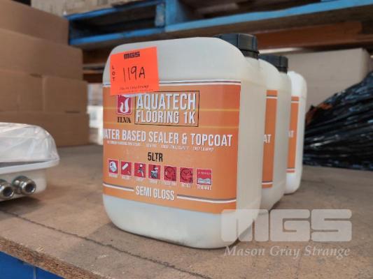 3 X 5.0 L CONTAINERS ILVA AQUATECH FLOORING (HMMB05D) CLEAR WATER BASED SELF-SEALING TOPCOAT, SINGLE PACK 1K SEMI-GLOSS. RRP $239.90 PER CONTAINER (COVERS APPROX. 10 SQM/LITRE).