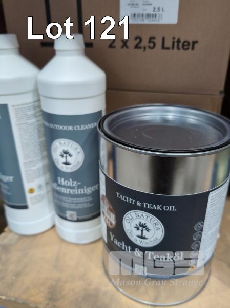 4 X 2.5 L TINS OLI-NATURA YACHT & TEAK OIL. RRP $192.59 PER TIN. (COVERS 12-20 SQM/LITRE) 2 X 1.0 L OLI-NATURA OUTDOOR WOOD CLEANER. RRP $30.25 PER LITER.