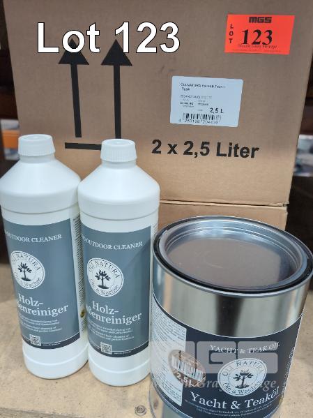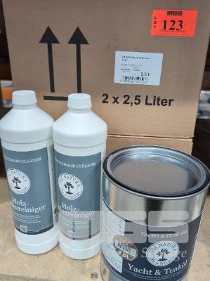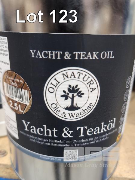 4 X 2.5 L TINS OLI-NATURA YACHT & TEAK OIL. RRP $192.59 PER TIN. (COVERS 12-20 SQM/LITRE) 2 X 1.0 L OLI-NATURA OUTDOOR WOOD CLEANER. RRP $30.25 PER LITER.