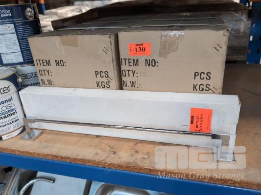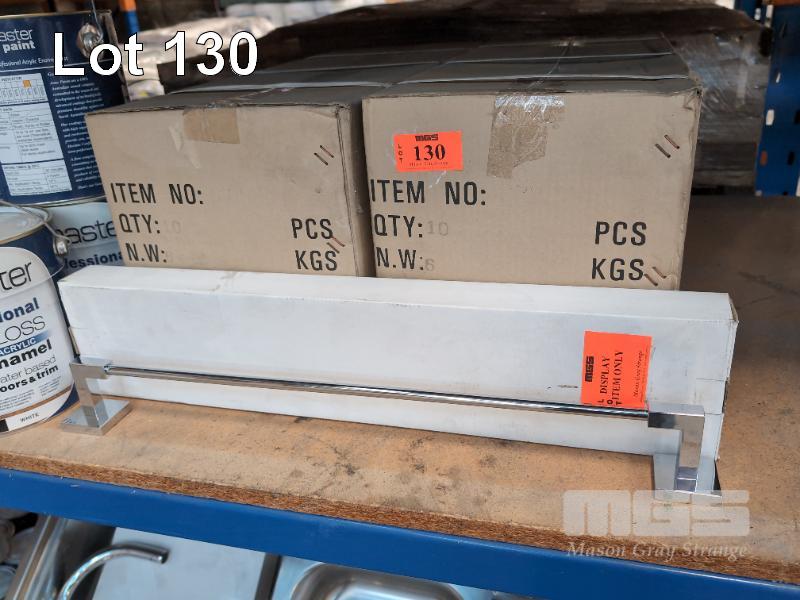 20 x WALL MOUNT SINGLE TOWEL RAILS, CHROME, WITH FITTINGS. NEW. 2 X CARTONS.