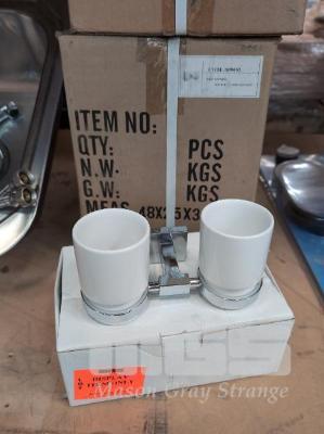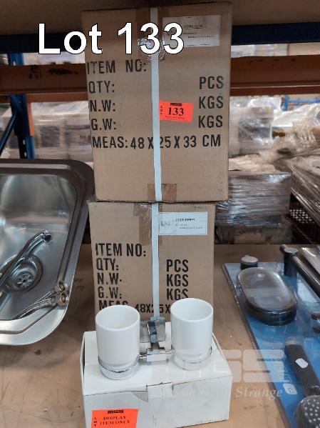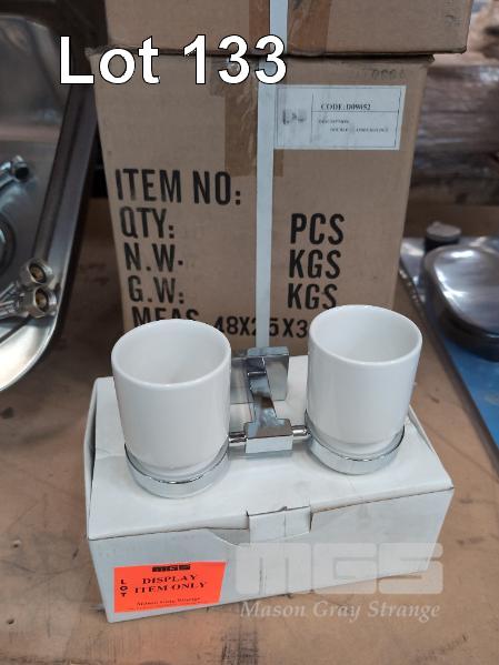 20 X WALL MOUNT DOUBLE GLASS HOLDERS WITH FITTINGS. NEW. 2 X CARTONS.