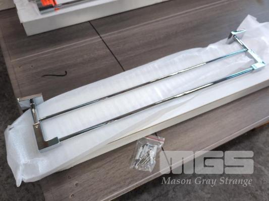 20 X WALL MOUNT DOUBLE TOWEL RAILS, CHROME, WITH FITTINGS.