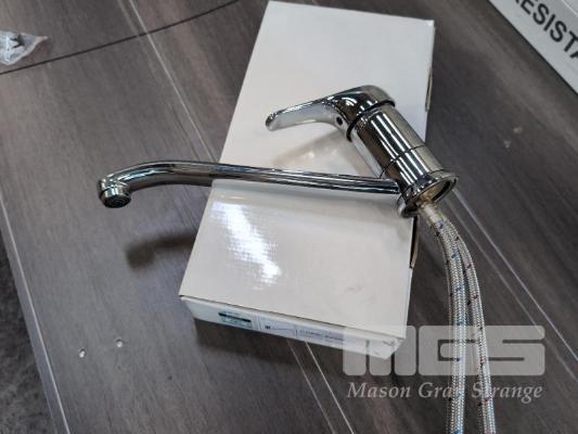 12 X CHROME SINGLE LEVER SINK MIXER TAPS, STRAIGHT SPOUT. ALL NEW. 1 X CARTON.
