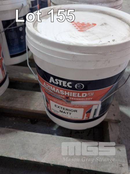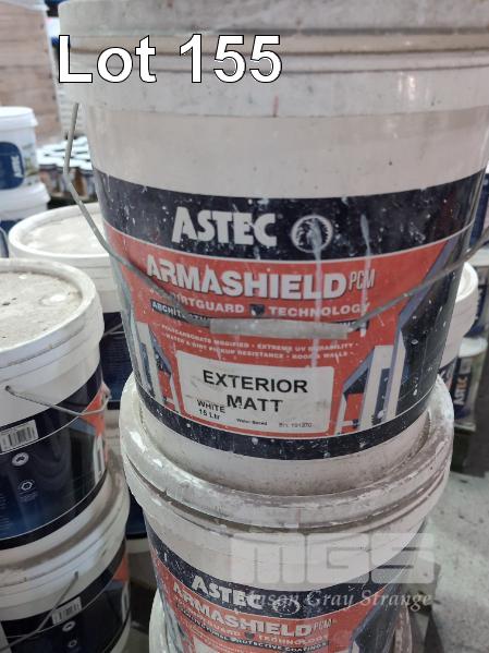 5 X 15 LITRE PAILS ASTEC PAINTS ARMASHIELD EXTERIOR MATT ARCHITECTURAL PROTECTIVE COATING. COLOUR WHITE. 1 X 15 LITRE PAIL ASTEC PAINTS ARMASHIELD EXTERIOR MATT ARCHITECTURAL PROTECTIVE COATING. COLOUR ACCENT.