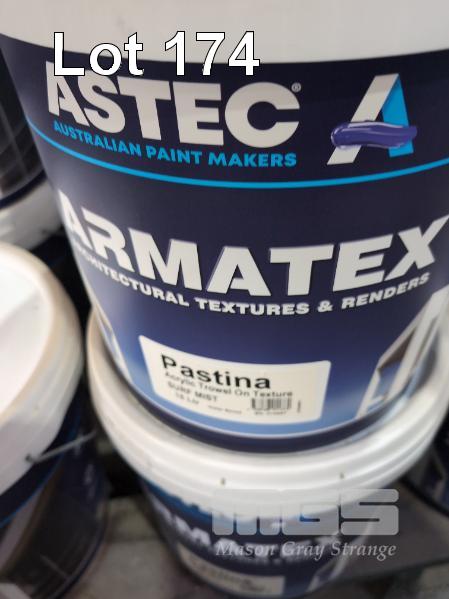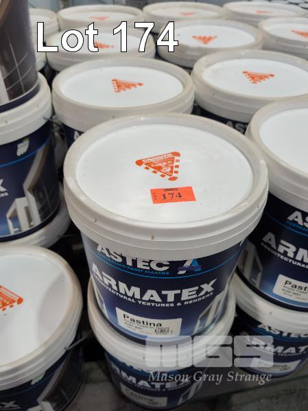 8 X 15 LITRE PAILS ASTEC ARMATEX PASTINA ACRYLIC TROWL ON ARCHITECTURAL TEXTURE. COLOUR SURF MIST.