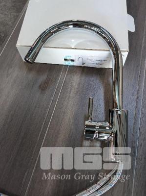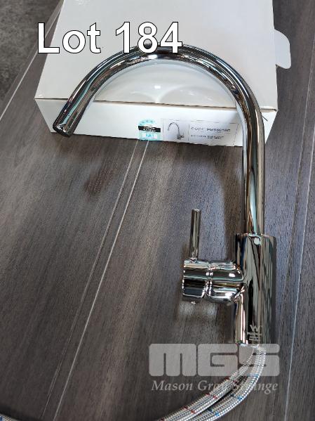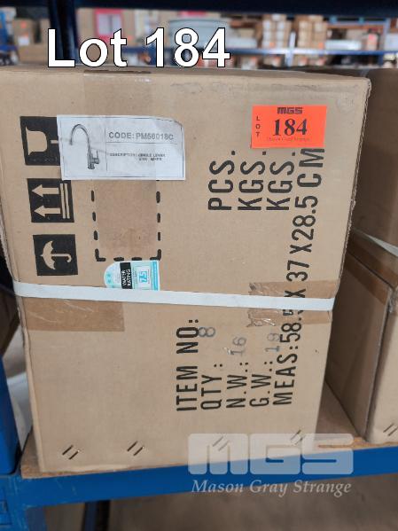 8 X CHROME SINGLE LEVER SINK MIXER TAPS, CURVED SPOUT. ALL NEW. 1 X CARTON.