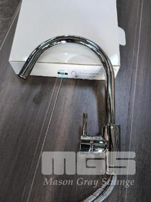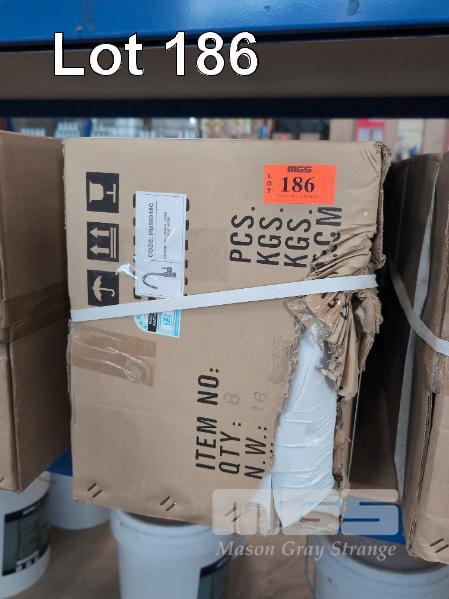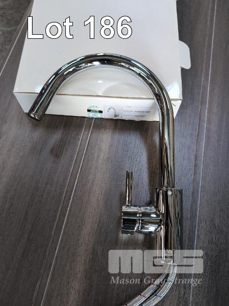 8 X CHROME SINGLE LEVER SINK MIXER TAPS, CURVED SPOUT. ALL NEW. 1 X CARTON.