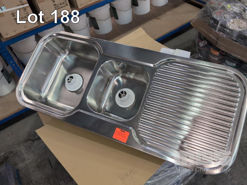 1 X DOUBLE BASIN STAINLESS STEEL SINK. ALL NEW.