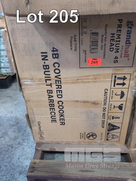 GRANDHALL PREMIUM 4S BUILT-IN STAINLESS STEEL COVERED GAS BBQ. FEATURES STAINLESS STEEL HOOD WITH 4-BURNERS PLUS ELECTRONIC IGNITION. MOD: 1003 NEW IN BOX ** LEFT BBQ IN IMAGE ** ** LAST OF STOCK - TWO LEFT AFTER THIS ONE **