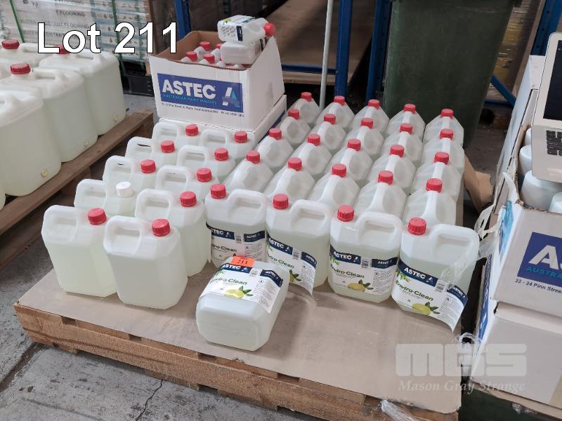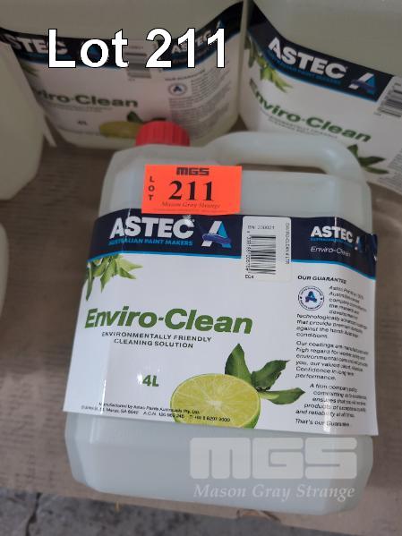 35 X 4 LITRE JERRY CANS & 30 X 1 LITRE JERRY CANS OF ASTEC ENVIRO-CLEAN WATER BASED WAX, GREASE, OIL & SILICONE CLEANING SOLUTION. 170 LITRES (APPROX) TOTAL. CONTENTS ONE PALLET.