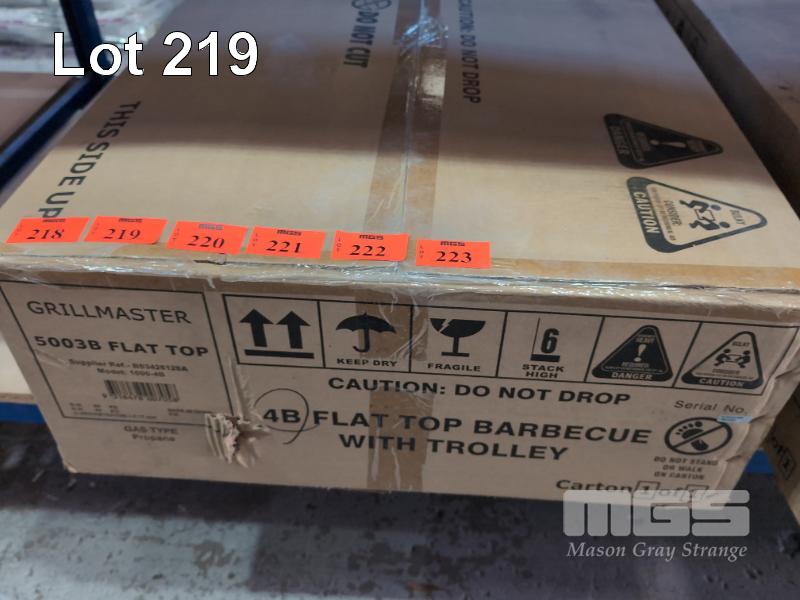 GRILLMASTER MOBILE 4-BURNER FLAT TOP GAS BBQ WITH TROLLEY MOD: 1000-4B NEW IN BOX. ORP $599
