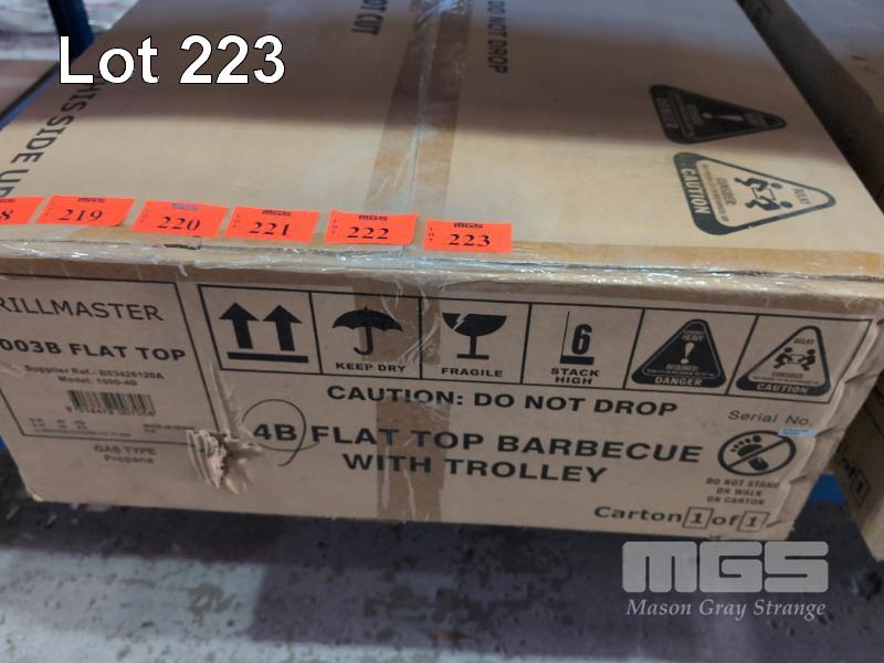 GRILLMASTER MOBILE 4-BURNER FLAT TOP GAS BBQ WITH TROLLEY MOD: 1000-4B NEW IN BOX. ORP $599