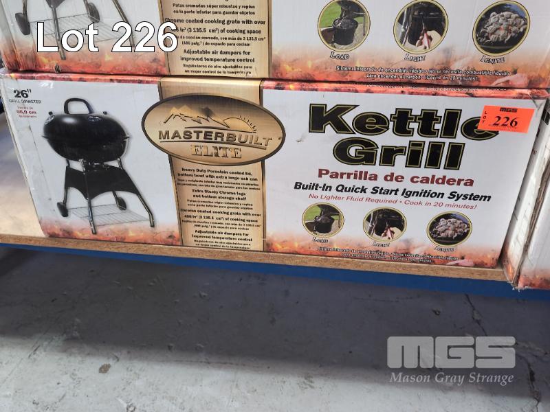 MASTERBUILT ELITE 26" KETTLE CHARCOAL GRILL * 66 CM DIAMETER GRILL ** BUILT-IN QUICK START IGNITION SYSTEM. EXTRA STURDY CHROME LEGS WITH STORAGE SHELF. MODEL 20041411 NEW IN BOX. ORP $399 NO GST
