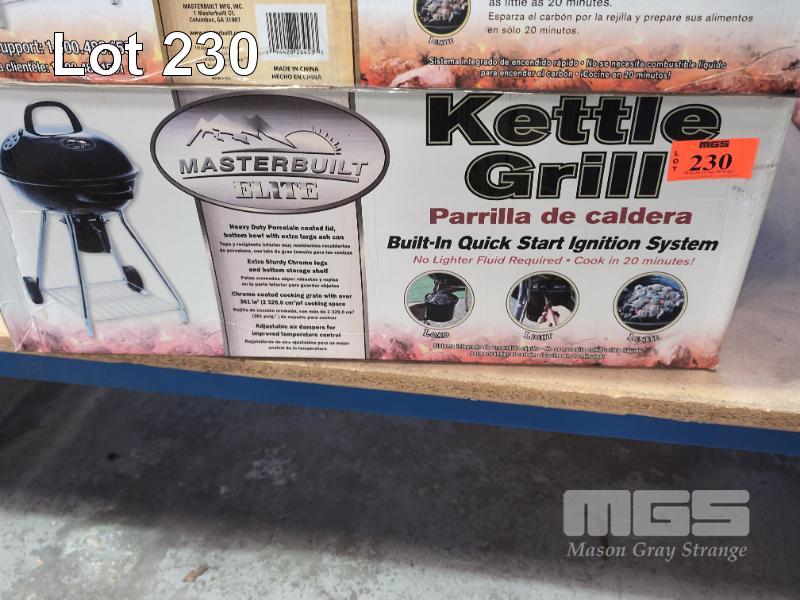 MASTERBUILT ELITE 22.5" KETTLE CHARCOAL GRILL * 57 CM DIAMETER GRILL ** BUILT-IN QUICK START IGNITION SYSTEM. EXTRA STURDY CHROME LEGS WITH STORAGE SHELF. MODEL 20040311 NEW IN BOX. ORP $299