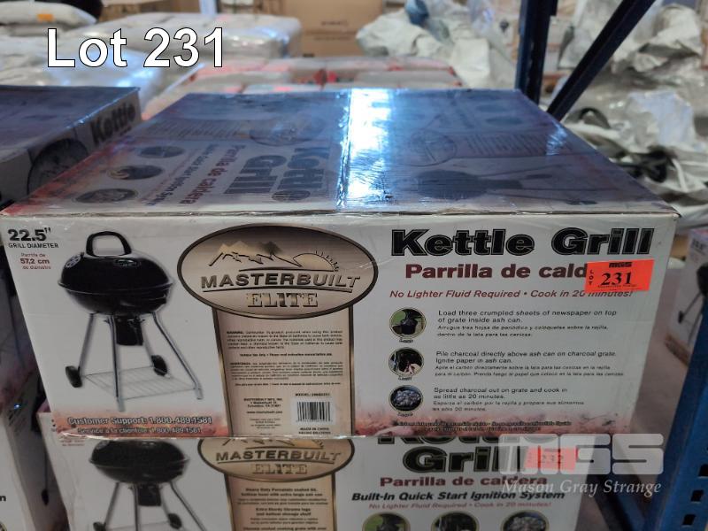 MASTERBUILT ELITE 22.5" KETTLE CHARCOAL GRILL * 57 CM DIAMETER GRILL ** BUILT-IN QUICK START IGNITION SYSTEM. EXTRA STURDY CHROME LEGS WITH STORAGE SHELF. MODEL 20040311 NEW IN BOX. ORP $299