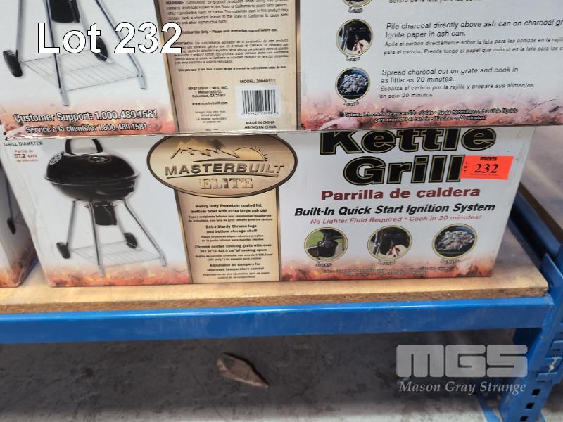 MASTERBUILT ELITE 22.5" KETTLE CHARCOAL GRILL * 57 CM DIAMETER GRILL ** BUILT-IN QUICK START IGNITION SYSTEM. EXTRA STURDY CHROME LEGS WITH STORAGE SHELF. MODEL 20040311 NEW IN BOX. ORP $299