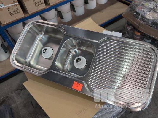 1 X DOUBLE BASIN STAINLESS STEEL SINK. ALL NEW.