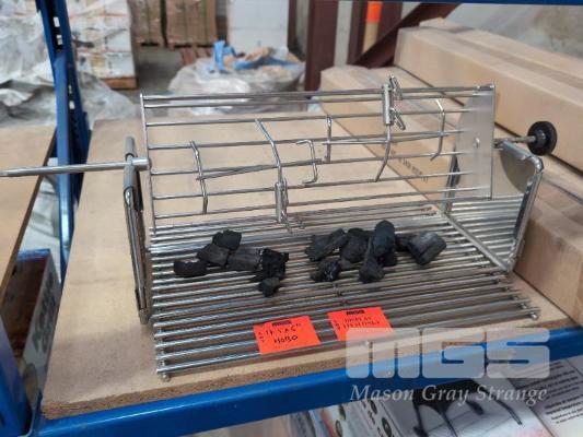 INCLUDES EZQ 17.5 X 6" STAINLESS STEEL ROTISSERIE CRADLE, HANDLE, CLAW CLAMPS & CLAWS AND MOTOR MOUNT.