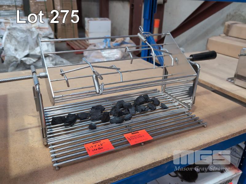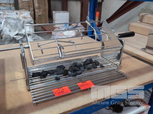 INCLUDES EZQ 17.5 X 8" STAINLESS STEEL ROTISSERIE CRADLE, HANDLE, CLAW CLAMPS & CLAWS AND MOTOR MOUNT.