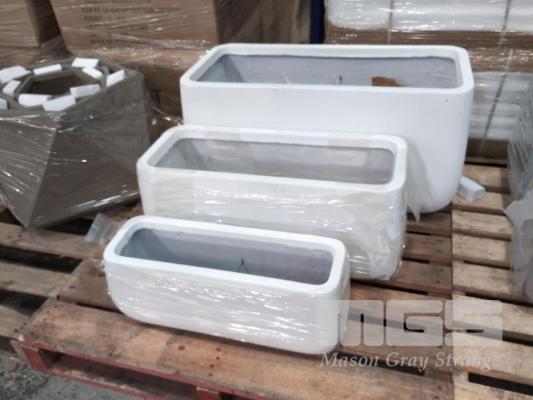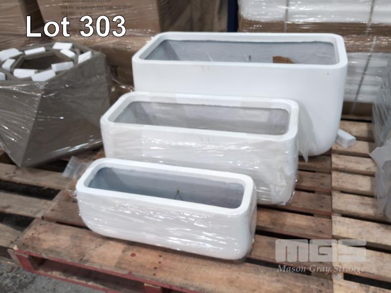 2 X SETS OF 3 CONTEMPORARY PLANTER POTS (NEW) STYLE MONARCH TROUGH COLOUR ARCTIC SIZES... 2 @ 970 X 470 X 470 MM 2 @ 800 X 340 X 340 MM 2 @ 650 X 230 X 240 MM RRP $379.99 PER SET