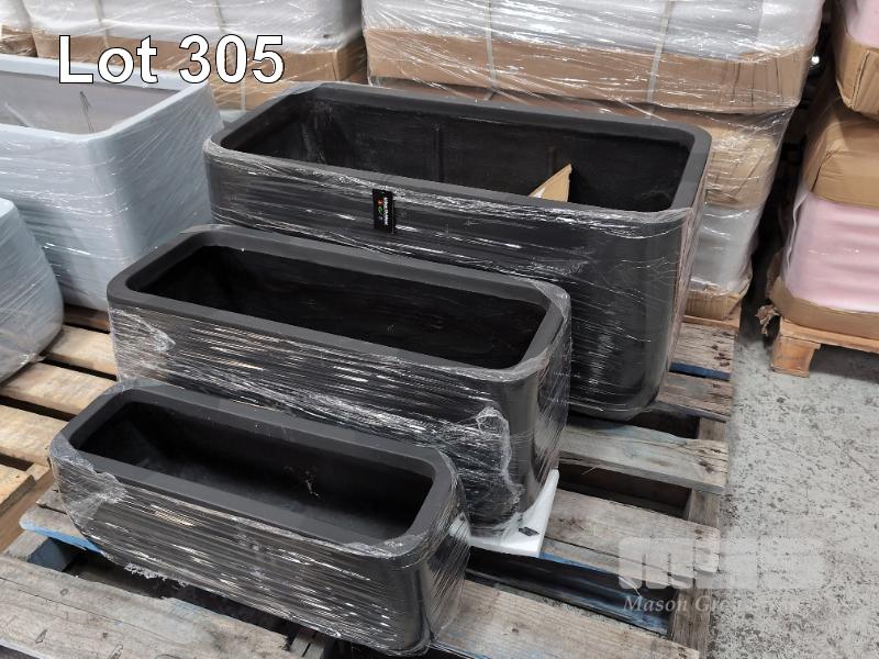 2 X SETS OF 3 CONTEMPORARY PLANTER POTS (NEW) STYLE MONARCH TROUGH COLOUR RAVEN SIZES... 2 @ 970 X 470 X 470 MM 2 @ 800 X 340 X 340 MM 2 @ 650 X 230 X 240 MM RRP $379.99 PER SET