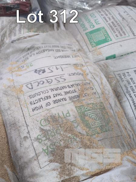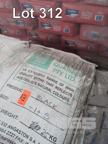 24 X 25 KG BAGS (SOME BROKEN) ASSORTED BAROSSA QUARRIES MILLED DECORATIVE STONE. INCLUDES BAGS MARKED SUNSET GOLD, KEYNETON GREEN, BLACK, SIENNA ETC. I X PALLET.