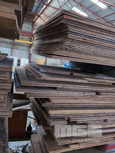 36 (APPROX) X PLYWOOD SHEETS. VARIOUS SIZES. 25 MM THICK. WIDTHS 700 MM TO 1,200 MM. LENGTHS APPROX 2,400 MM MM. SOME OFCUTS. MANY CUTOUTS. 2 X PACKS.