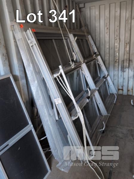 1 X PANEL LARGE 6-WINDOW ALUMINIUM AWNING WINDOW FRAME. OVERALL 2,590 X 1,785 X 105 MM (W L D). DUAL PANE, FLY SCREENS AND TINTED GLASS ON EACH WINDOW. SINGLE WINDER. FOR AN ELEVATED PLACEMENT.